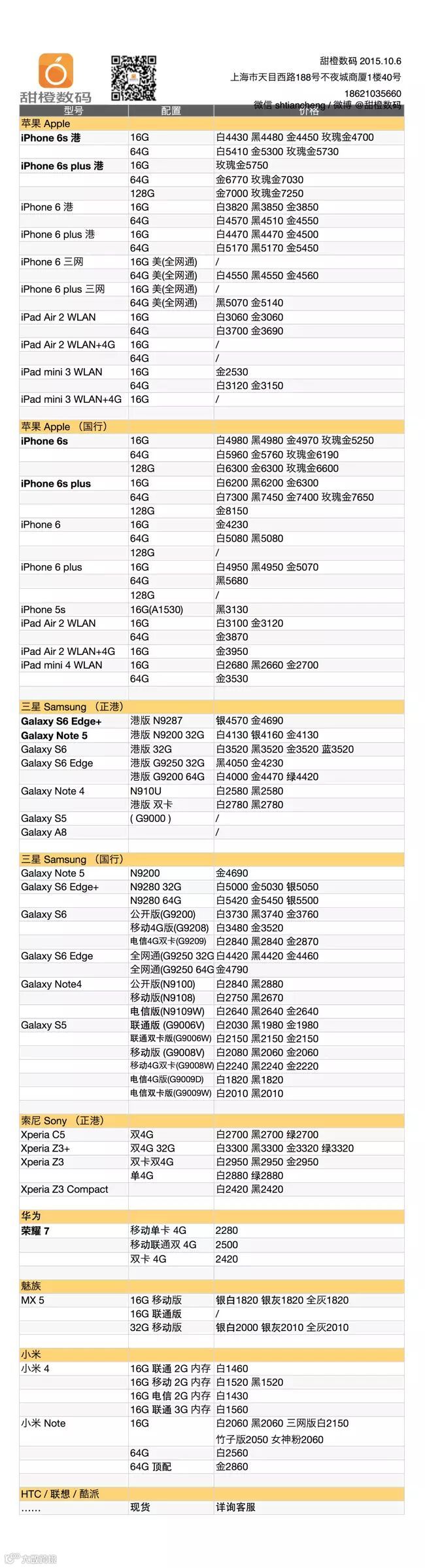 iPhone 6s 及 6s plus 港版保持小幅走低,国行版的常规颜色款小幅度降价,而最热门的玫瑰金款则涨跌幅度都较大;iPhone 6 及 plus 相对稳定许多;三星 Galaxy Note 5 有小幅度的反弹,而 S6、S6 Edge 等之前较坚挺的型号则出现了降价。