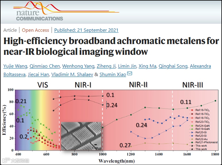Wang, Y., Chen, Q., Yang, W. et al. High-efficiency broadband achromatic metalens for near-IR biological imaging window. Nat Commun 12, 5560 (2021).