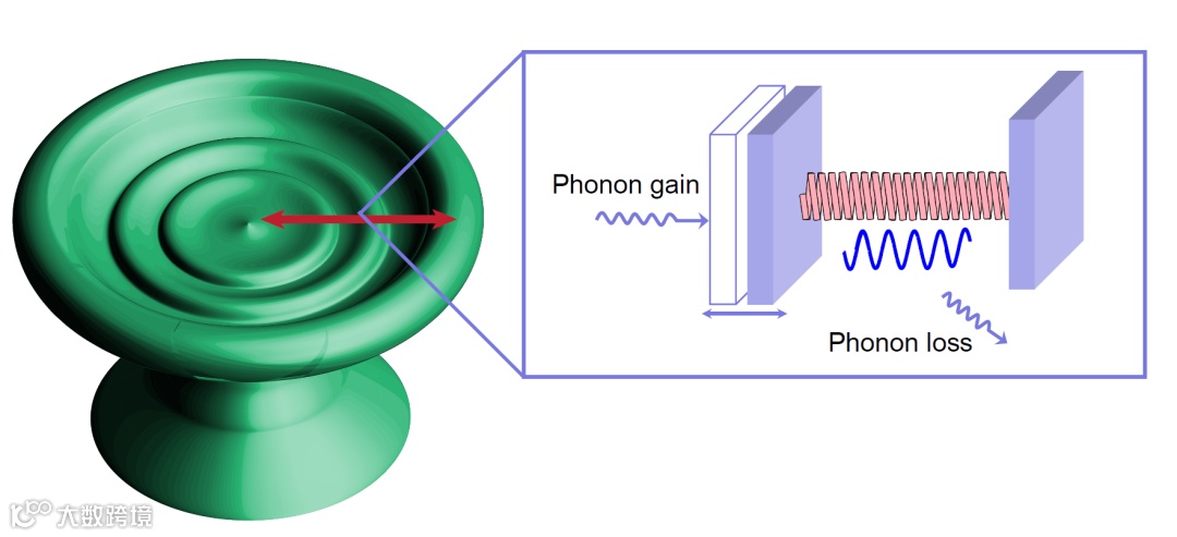 图2. 机械波在沿盘面径向传播中的耗散被光机械引起的声子激光效应所补偿