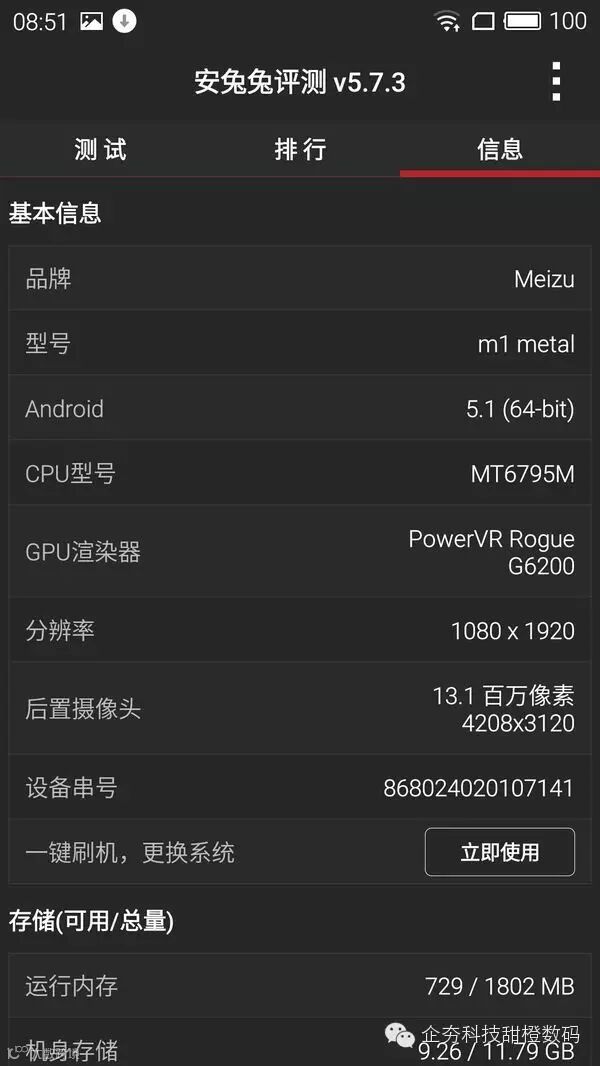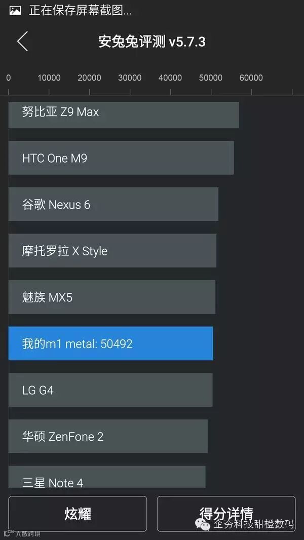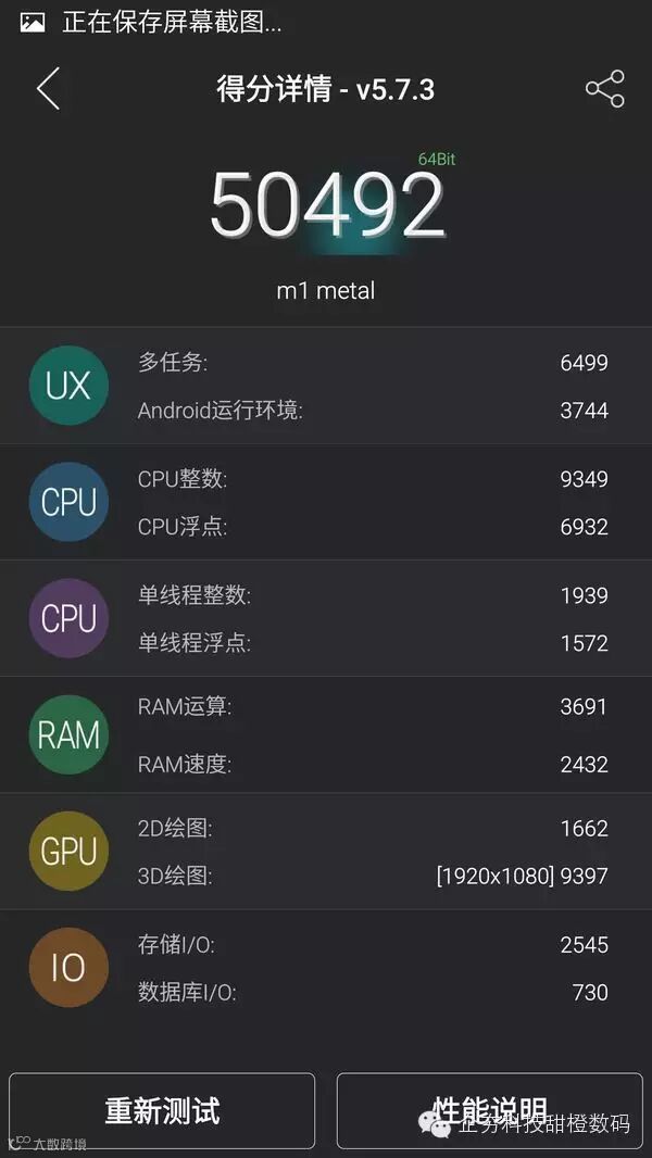 魅蓝Metal在“平衡”模式下的跑分数据: