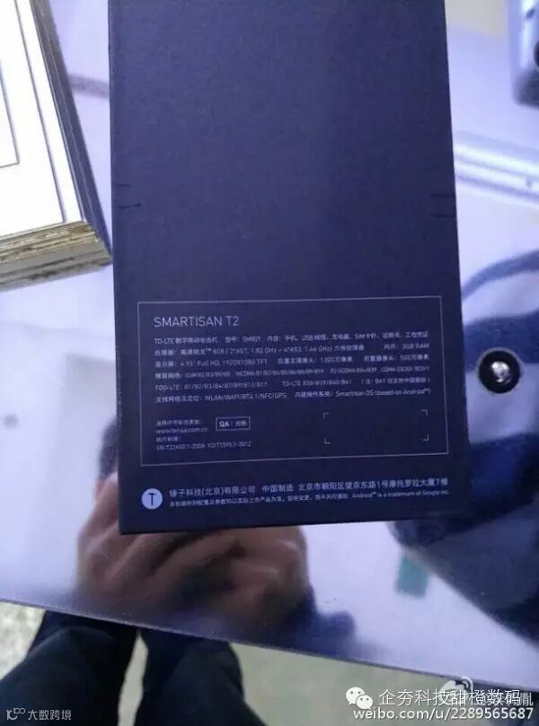 曝光的锤子T2包装盒上的信息显示,锤子T2的手机型号为SM801,搭载高通骁龙808六核处理器 ,拥有3GB RAM内存,并配备4.95英寸1080P全高清分辨率触控屏,拥有前置500万像素摄像头+1300万像素主摄像头,支持光学防抖功能,与此前安兔兔曝光的配置完全相同。