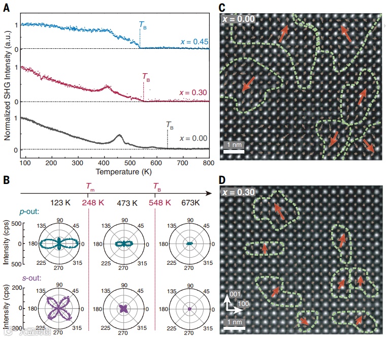 图3. SHG和STEM手段探究超顺电的微观结构机理