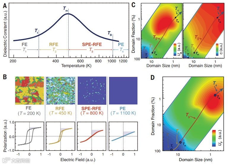 图1. 弛豫铁电中超顺电态的介电、极化、储能性质的相场模拟