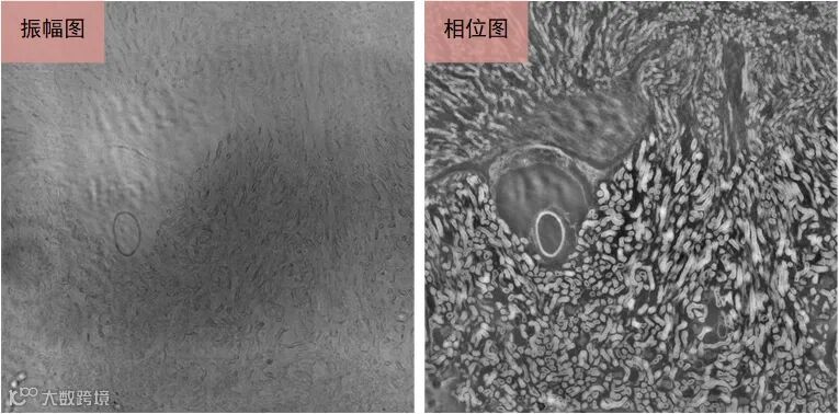 图1:未染色的小鼠脑细胞振幅和相位对比图,其中相位反映了更多的结构信息