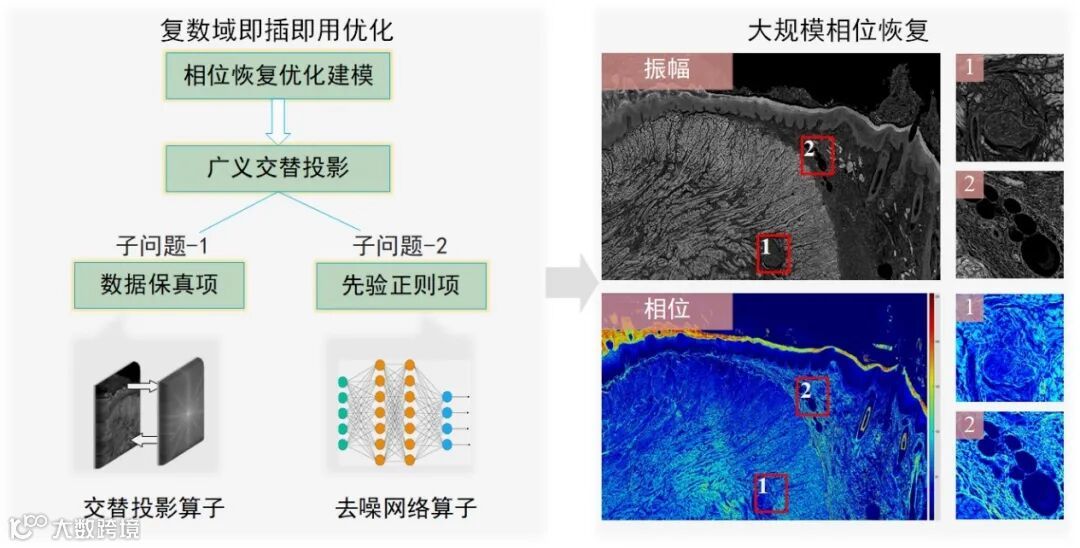 超大规模相位恢复:在超大规模相位恢复任务中,大部分现有方法因为过高的内存需求或过长的运行时间而难以适用。所提出的方法首次实现了分钟量级的超大规模(8K)高质量相位恢复。