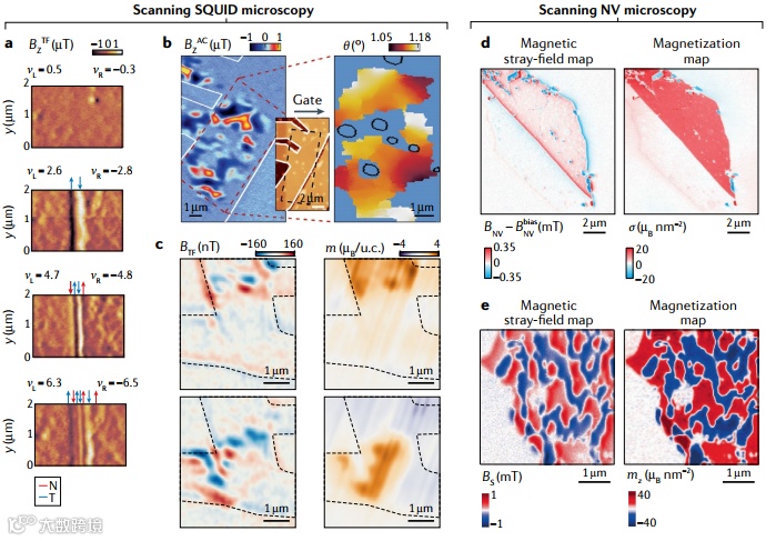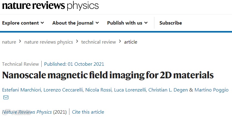 纳米磁成像Nanoscale magnetic imaging,可以提供有关材料系统长度尺度、不均匀性和相互作用的微观信息。因此,是一种强大的工具,可以探测对局部环境敏感的二维材料中的超导性、莫特绝缘态和磁有序态等现象。近日,瑞士巴塞尔大学物理系Martino Poggio团队在Nature Reviews Physics上发表综述文章,系统论述了最有希望用于二维材料研究的弱磁场成像技术,基中包括:磁力显微镜、扫描超导量子干涉器件显微镜,和扫描氮空位中心显微镜。