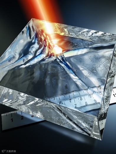 图1,展示方解石晶体中“幽灵”双曲极化激元各向异性传播的艺术示意图