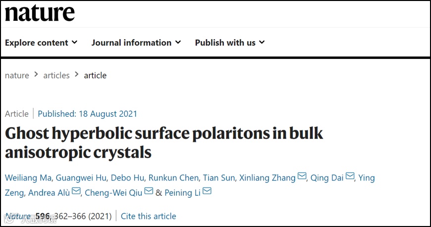 华中科技大学是本研究论文的第一通讯单位,第一作者包括华中科技大学光学与电子信息学院博士生马玮良、博士后陈闰堃、新加坡国立大学博士后胡光维、国家纳米科学中心胡德波副研究员。华中科技大学李培宁教授、张新亮教授、新加坡国立大学仇成伟教授、国家纳米科学中心戴庆研究员、纽约州立大学AndreaAlù教授为论文共同通讯作者。本研究工作得到了国家自然科学基金、国家重点研发计划的资助。此次研究突破是华中科技大学李培宁研究团队在极化激元光学研究领域长期积累所取得的成果。目前,李培宁教授课题组已在极化激元光学方向上以第一作者和通讯作者发表高水平研究成果多项,包括Science1篇,Nature2篇,NatureMaterials 1篇,NatureCommunications 2篇。