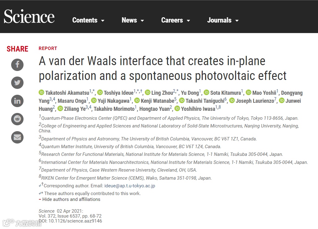 关键词:对称性工程、自发光伏效应、范德华界面、转角堆垛、二维材料