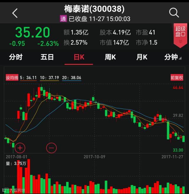 梅泰诺是第二家公布2017年高送转方案的上市公司,第一家是凯普生物。方案公布后,凯普生物连续三个“一字板”涨停,即使是11月23日和昨日市场大幅调整,凯普生物均逆势上涨,近6个交易日累计涨幅46.21%,市场对于高送转行情的追捧可见一斑。梅泰诺在方案公布时间上尽管屈居第二,但公司也有自己的相对优势,一是转增比例高,二是公司股价相对较低,三是公司基本面优异。公司集5G、网络安全、人工智能、手游等多个热门题材于一身,同时预计全年业绩大增,目前估值30倍左右,后期市场表现值得期待。