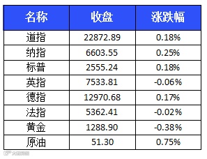 周三美股继续收涨,三大股指齐创历史新高。道指收涨42.21点,涨幅为0.18%,报22872.89点;纳指涨16.3点,涨幅为0.25%,报6603.55点;标普500指数涨4.6点,涨幅为0.18%,报2555.24点。截止周三收盘,今年内道指已上涨近16%,标普500指数上涨14%,纳指上涨22%。