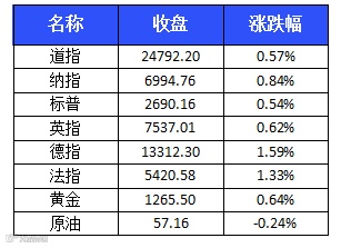 美股三大股指齐创历史新高 欧股创近六周新高