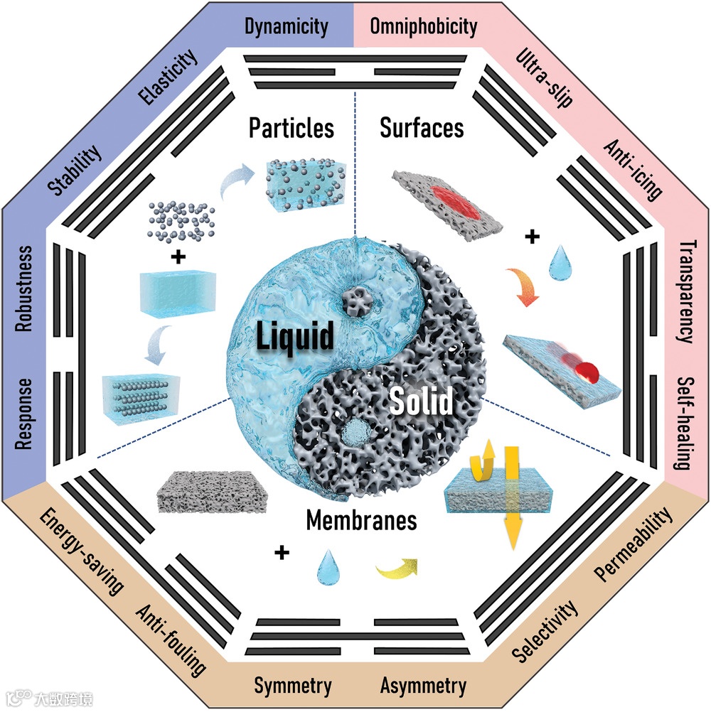 由液体材料构成的结构普遍存在于自然界中,实现了仅由固体材料无法实现的功能。借助于间质液体和组织的协同作用,简单的生物体能够自发地或对环境刺激作出反应地移动、跳跃、抓取等,这为科学研究和开发提供了许多生物灵感应用的启示。近年来,基于液体的自适应结构材料(LASMs)进入了应用领域,并因其在满足各种应用需求方面的灵活性而受到越来越多的关注,这些应用包括智能响应装置、液滴控制和操作、自清洁、防雾、自愈合涂层、提高电动动能转换效率、智能门控膜等。LASMs是一种由动态液相和稳定固相组成的结构材料。通过合理的界面设计,LASMs利用了固液两相的动态和静态协同作用,表现出动态适应性和稳定的机械结构。能够适应各种环境的结构材料的发展,为智能建筑带来了希望,从而为人们提供更高质量的节能生活。由于液相材料具有自发和动态的特性,其应用日益广泛是目前研究的趋势之一。基于液体的自适应结构材料(LASMs)作为动态液相材料和传统固体材料之间的桥梁,已被证明具有前所未有的动态、稳定性、自适应性和刺激响应性等特性,在许多应用中如3D打印、软体机器人、疏水表面、微流体、多相分离等。