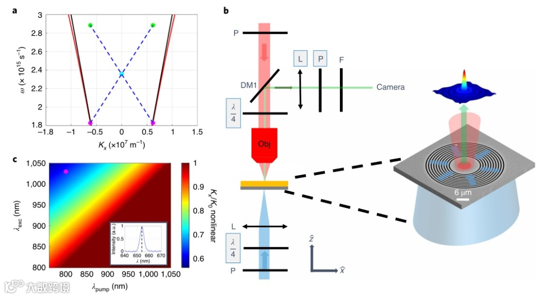 近日,来自以色列理工学院电子工程系的Kobi Frischwasser等人介绍了非线性近场光学显微镜(NNOM),它能够通过非线性波混合实时倏逝波成像,同时仅使用标准光学分量。作为概念验证,他们提出了倏逝等离子体模式的非微扰单次映射,利用主体金属的非线性,实时监控外部控制的模式变化。他们还进一步展示了以偏振敏感、自旋选择性的方式提取全场信息(所有电场分量的振幅和相位)的能力。这种简单且高度可调的技术可以扩展到二维材料中偏振子的深亚波长成像或其他纳米光导向模式,用于快速光子器件表征和优化光-物质相互作用。相关研究工作发表在《Nature Photonics》上。(詹若男)