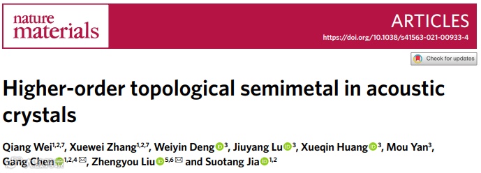 高阶拓扑半金属的实现进一步拓展了对拓扑物态的认识,具有重要的科学意义。同时,这种位于拓扑半金属棱上的铰链态的发现为调控声波,乃至光波等经典波的传输提供了新的手段,也为设计新型低能耗拓扑电子材料或器件提供了新思路。