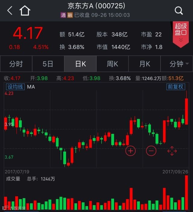 自2016年3季度开始,面板行业开始进入景气周期。京东方A3季度业绩的放量,一部分得益于下游厂家10.1、双11、春节等重要消费季的备货,另一方面受益于全面屏时代的开启。天风证券指出,公司大概率成为国内首先量产柔性OLED面板企业,符合手机屏发展大趋势。 今年以来京东方A累计上涨47.35%。近期正值三季报预告发布期,昨日鲁西化工因三季报大幅预增而涨停,今日京东方A的市场表现是否也值得期待?