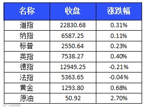 周一美股小幅收涨,道指和纳指再次创下历史新高。具体来看,道指收涨69.61点,涨幅为0.31%,报22830.68点;纳指涨7.52点,涨幅为0.11%,报6587.25点;标普500指数涨5.91点,涨幅为0.23%,报2550.64点。投资者正在关注美联储官员的讲话,以及将于本周三启动的美股第三季度财报季。