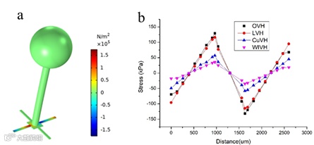 仿真分析OVH敏感微结构梁上的应力分布,OVH的最大应力高于之前研制的LVH、CuVH和WIVH。