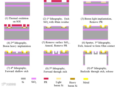 图3 OVH十字梁敏感微结构的MEMS工艺流程图