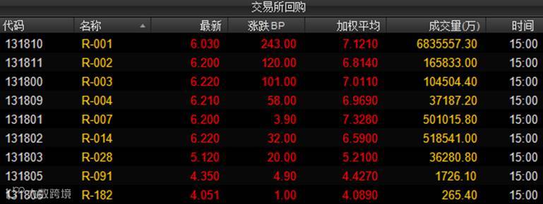 27日早间,交易所市场债券回购利率继续飙高,截至收盘,沪深交易所7天(含)以内各期限回购加权平均利率全线升破6%。其中,隔夜回购利率盘中最高涨至9%。