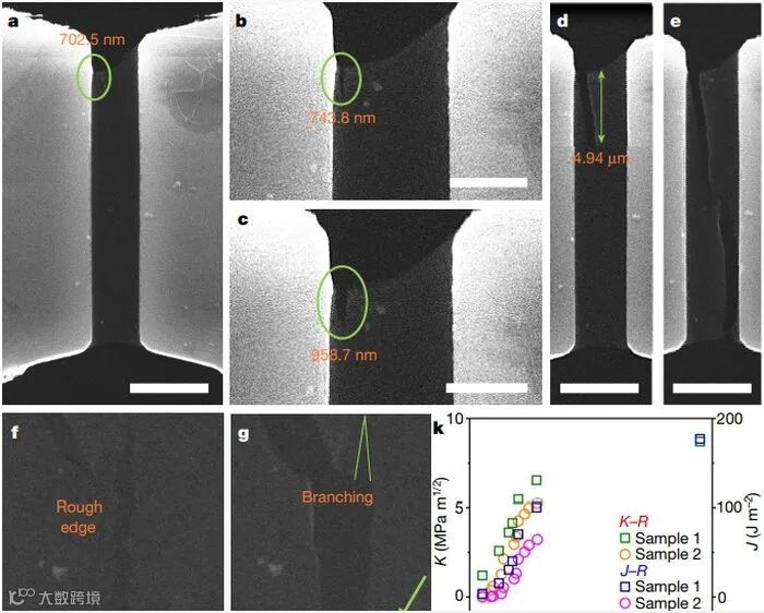 为了找出原因,研究团队对 h-BN 样品施加应力,使用扫描电子显微镜和透射电子显微镜尽可能地观察裂纹是如何发生的。在经过 1,000 多个小时的实验和后续理论分析后,他们发现了其中的奥秘。