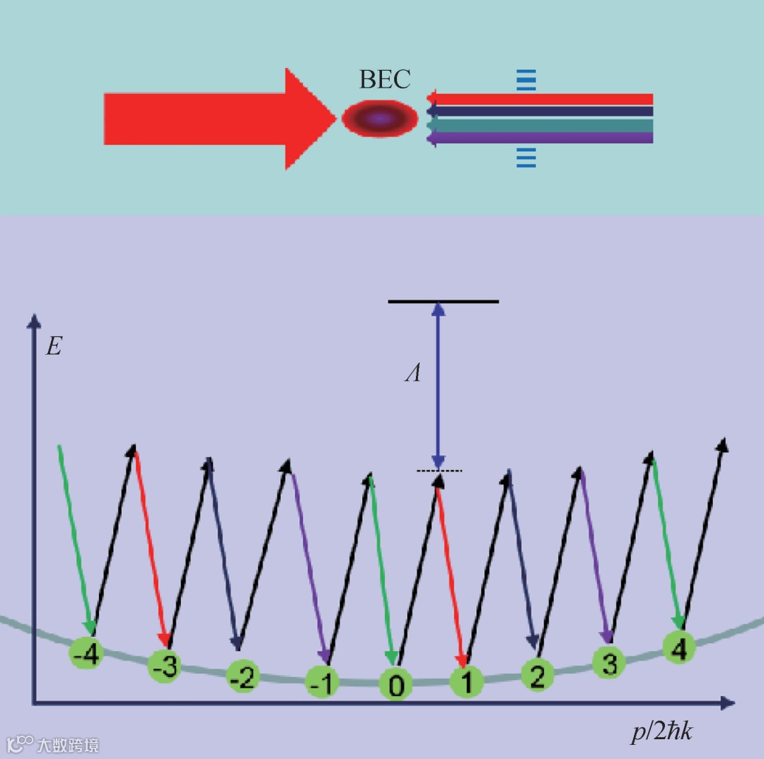 图3 利用Raman—Bragg光耦合不同的动量态,利用动量空间合成维度来开展量子模拟研究