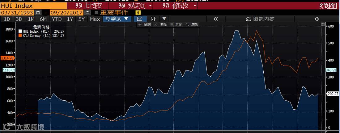 分析师表示,这表明矿业股可能会在下一个上涨期间相对黄金价格的涨幅有加倍放大的杠杆作用。