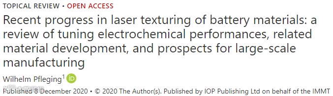 阳极和阴极的激光结构化分别有利于充电和放电过程。本综述叙述了两种利用激光烧蚀来增加活性表面的主要方法,一种是单面或双面涂层电极钻孔,另一种为利用激光烧蚀在电极上制备烧蚀深度达到集流体的网格或平行线图案。