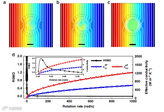 近日,来自新加坡国立大学电气与计算机工程系的仇成伟教授团队在本研究工作中建议在一个系统内旋转介质,自旋组件能够极大地改变物理场的行为,通过将未固化的PDMS纺成双层结构来提出可调模拟热材料。当机械转速适中时,PDMS的果冻状介质可以牢固地保持起对流作用的流体,从而显着避免流量不均。我们提供了集成纺丝液与该系统的局部有效电导率/场偏转之间的理论关系。可以肯定地确认了在各种导电要求下的主动热控制,包括增强的透明度,场扭曲,场反向分布和敏感的隐蔽性,显示出连续可调性,范围从接近零到接近无穷大,并且具有常规静态热力缺乏的高便利性元材料。这是热力学中反奇偶时对称热传递的成功证明,这些发现填补了仅通过操纵均质材料层即可实现有源可调电导率/各向异性和功能切换的空白。相关工作发表在《Nature Communications》上。(钟雨豪)