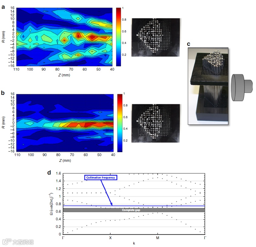 利用超材料透镜(ML)来对材料进行成像,特别是对生物材料,从来没有被报道过。最近,来自美国Echonovus公司,北德克萨斯大学(University of North Texas),墨西哥州自治大学(Autonomous University of the State of Mexico)等单位的研究人员展示了一种声学超材料透镜在倏逝区和菲涅耳区以外探测生物组织仿体中的横向亚波长物体特征。超材料透镜产生的准直声束比波束形成聚焦的声束小8倍,获得了超过菲涅耳区极限3.6倍的横向分辨率。在菲涅耳区极限附近的明胶组织仿体中检查了硬物和组织近似肿块。硬物体的横向尺寸和分散尺度分辨率达到0.50个波长,组织近似肿块略高于0.73个波长。本工作展示了超材料在空间成像方面的应用,以及在超过菲涅耳区极限的生物系统中的亚波长成像。文章以“Sub-wavelength lateral detection of tissue-approximating masses using an ultrasonic metamaterial lens”发表在Nature Communications上。(鲁强兵)