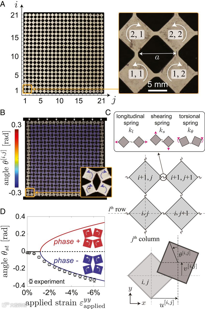 在许多有序固态材料中,包括铁电体、铁磁体、铁磁弹性体、形状记忆合金和液晶中,两相或更多相的共存起着核心作用。尽管本质上有所不同,但这些材料都出现了畴壁,即一种将不同相区分开的拓扑缺陷。这样的界面对于控制许多材料特性至关重要,也已被用于实现逻辑操作、存储器和用于读取光学存储器的线扫描仪。受到原子尺度上畴壁控制策略的最新进展的启发,研究人员设计了各种非线性机械结构来支持这些界面。以结构规模设计的畴壁促进了弹性脉冲的控制、信息的加密以及可展开结构以及相变超构材料的实现。然而,由于力学超构材料的结构复杂性,尚未提出能够完全描述此类畴壁的物理性质的分析解决方案。这限制了它们在智能结构和设备设计中的系统应用,并阻碍了其他功能的发现。