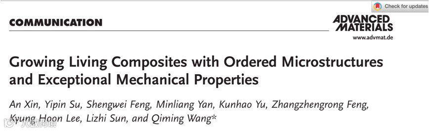 A. Xin, Y. Su, S. Feng, et al. Growing Living Composites with Ordered Microstructures and Exceptional Mechanical Properties[J]. Advanced Materials, 2021, n/a(n/a): 2006946.