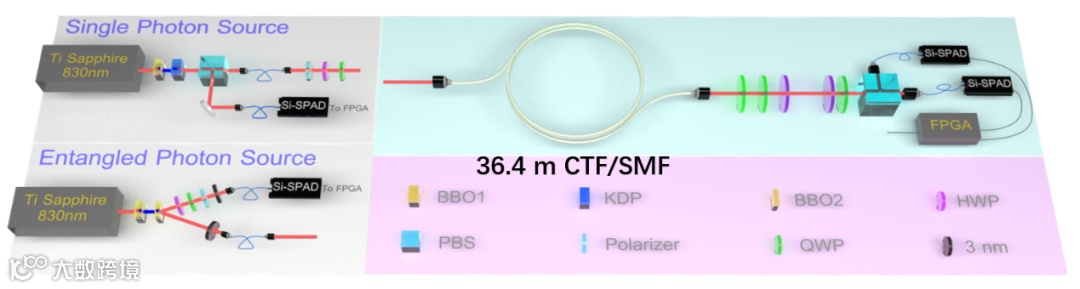 图2 使用CTF/SMF传输单光子偏振态和偏振纠缠态的实验装置图。