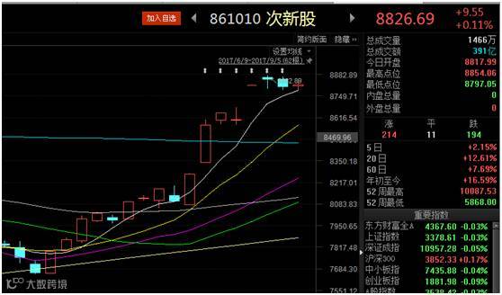 安信证券统计,近四个月打开涨停板的新股,周平均涨跌幅为8.35%,连续三周大幅上涨。同期上证综指上涨1.07%、深证成指上涨2.08%、中小板指上涨2.60%、创业板指下跌2.89%。上周次新股维持强势,136只新股实现上涨,53只新股涨幅超过10%,朗新科技周涨幅51.76%排名榜首;10只新股上周出现下跌,无一新股跌幅超过10%。连续三周新股板块表现强势,上行趋势明显,8月开板的新股出现连续拉升;此外,今年上市调整充分的次新股已经有所表现,新股板块蔓延之势已形成。