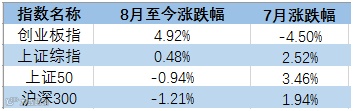 创业板在8月份的表现秒杀其他指数,的确让市场重新躁动起来,甚至出现了“创蓝筹”的说法,且被频频提及。