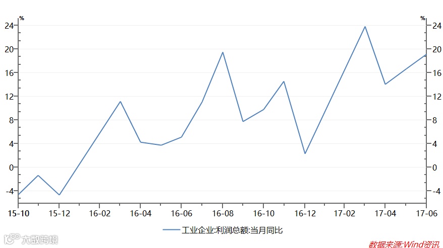 随着宏观形势好转和国内供给侧结构改革的效果显现,工业品通缩局面得到扭转,微观企业效益持续好转。2016年3月以来,统计局公布的工业企业利润已连续14个月保持增长,最近几个月增速进一步加快。