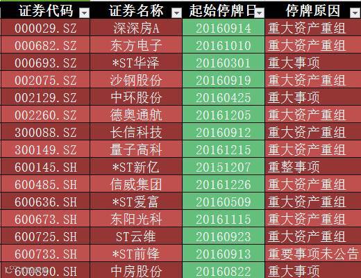 截至2017年7月28日部分长期停牌股票名单