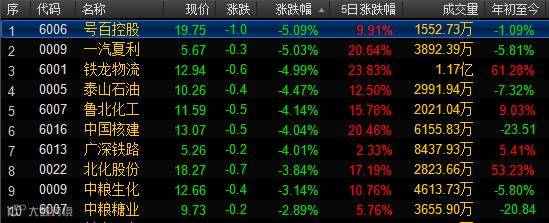 不难发现,今日国企混改概念指数依然疲软,下跌1.20%,跌幅在题材概念中位居首位。值得注意得是,今日涨幅前十的成分股只有中国联通一枝独秀,其他股票涨幅均有限。而跌幅前十的成分股则大幅下挫,跌幅较大。