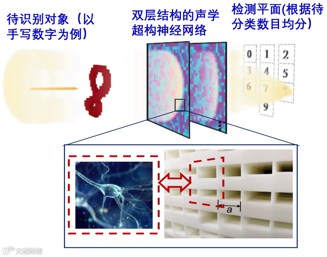 分析散射波来识别物体是波动物理研究中的关键问题之一,典型例子是声学领域中的医学超声检测、工业无损探伤和水下目标探测等。传统检测赖于富有经验的专家对结果的深入仔细分析,致使效率及准确率受限。尽管近年来深度学习技术在组织定征或者疾病诊断等许多重要领域的成功应用有助于提升检测效果及处理效率,但高质量声学图像的获得仍然需使用密集阵列的空间声场扫描。另一方面,深度学习技术中复杂计算所依赖的高性能计算机不仅显著增加了成本和能耗,亦使得器件的小型化和便携化更加困难。因此,寻找新的散射场分析机制来突破器件尺寸、处理速度、功耗大小及系统复杂度等方面的制约将具有重要学术意义与显著应用价值。