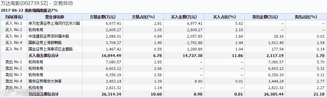 22日交易所盘后数据显示,有四家机构席位卖出万达电影2.286亿元,但也有一机构席位买入2609万元。