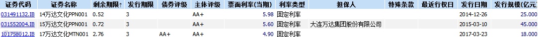 截至6月22日,万达商业+万达文化在境内债券市场发行、尚未到期的债券合计20支,面值总额958亿元。