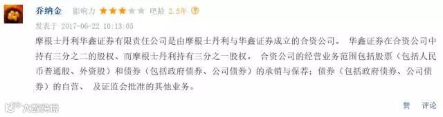 2011年5月4日,摩根士丹利与华鑫证券成立合资公司摩根士丹利华鑫证券有限责任公司,华鑫证券在合资公司中持有三分之二的股权、而摩根士丹利持有三分之一股权;