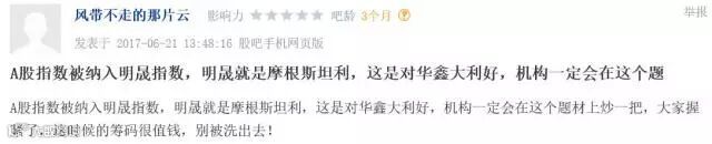 而且,昨日早间A股纳入MSCI的一开始,股吧里就已经在大张旗鼓地炒作华鑫股份了,这种对投资趋势和市场热点的把握估计让专业投资机构都感到汗颜吧?