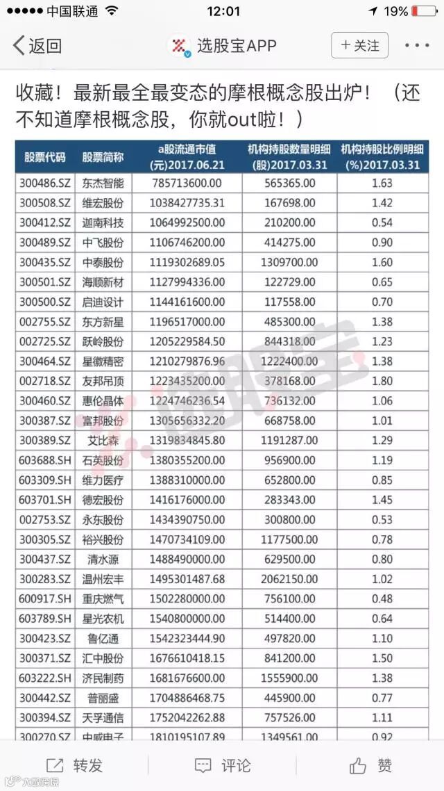 还有好事者根据摩根士丹利华鑫多因子精选策略混合基金的持仓情况拉出了所谓的“摩根士丹利概念股”榜单: