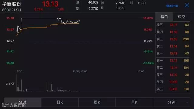 6月22日开盘后,华鑫股份便直封涨停而去,随后打开涨停,至午盘时收于13.13元/股,上涨8.78%。