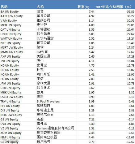 道指30只成分股今年内表现