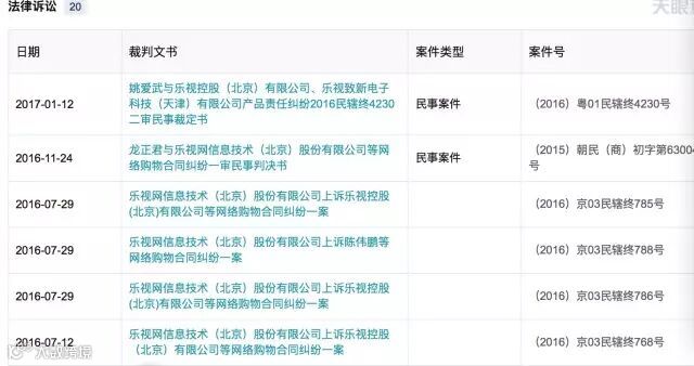 根据天眼查公开披露的信息显示,上述乐视系公司涉及的司法纠纷不在少数。