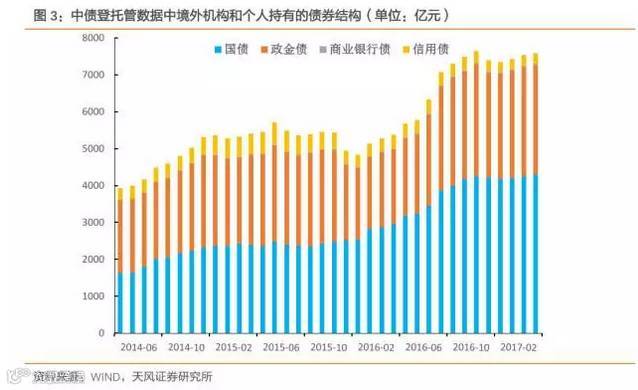相关统计数据显示,截至目前,国内已有473家境外投资者入市,总投资余额超过8000亿元人民币。但截至2017年4月末,在中债登44.99万亿元托管量中,境外机构占比仅1.7%左右,远低于欧美成熟债券市场。