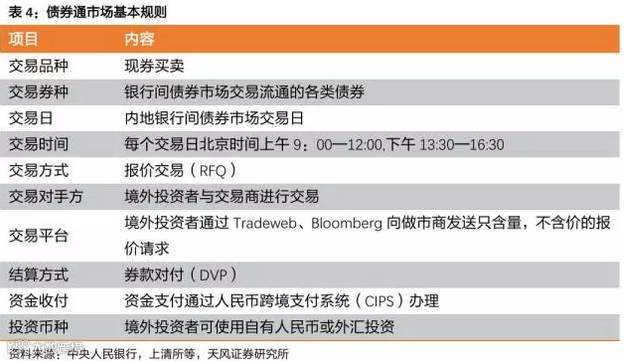 交易券种涵盖国债、政策性金融债、同业存单、中期票据、企业债等各种类型。工商银行、交通银行、德意志银行、汇丰银行等多家金融机构都有交易与境外机构达成。