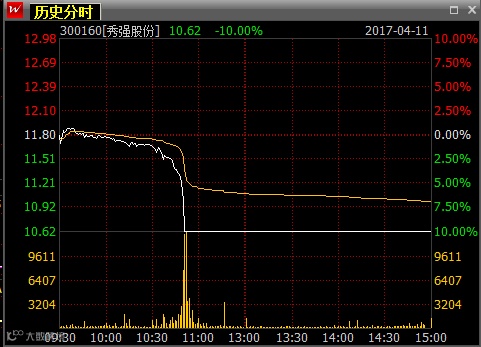 (秀强股份4月11日分时图)